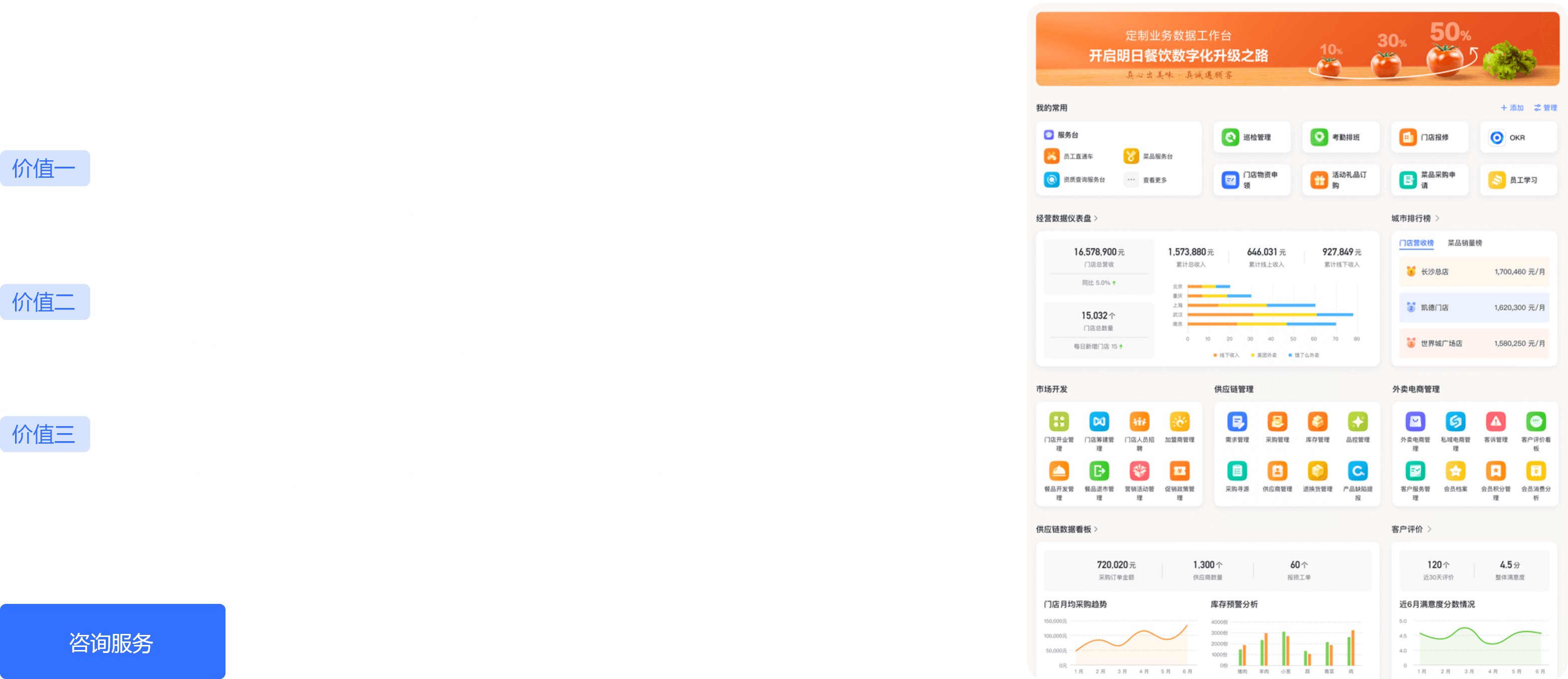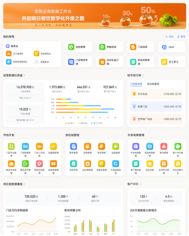 作為企業(yè)數(shù)字化的好幫手,飛書現(xiàn)推出餐飲行業(yè)最佳實(shí)踐秘籍餐飲行業(yè)企業(yè)未來數(shù)字總部,餐飲定制化工作臺,真正讓工具釋放生產(chǎn)力,讓數(shù)據(jù)高效流轉(zhuǎn)~